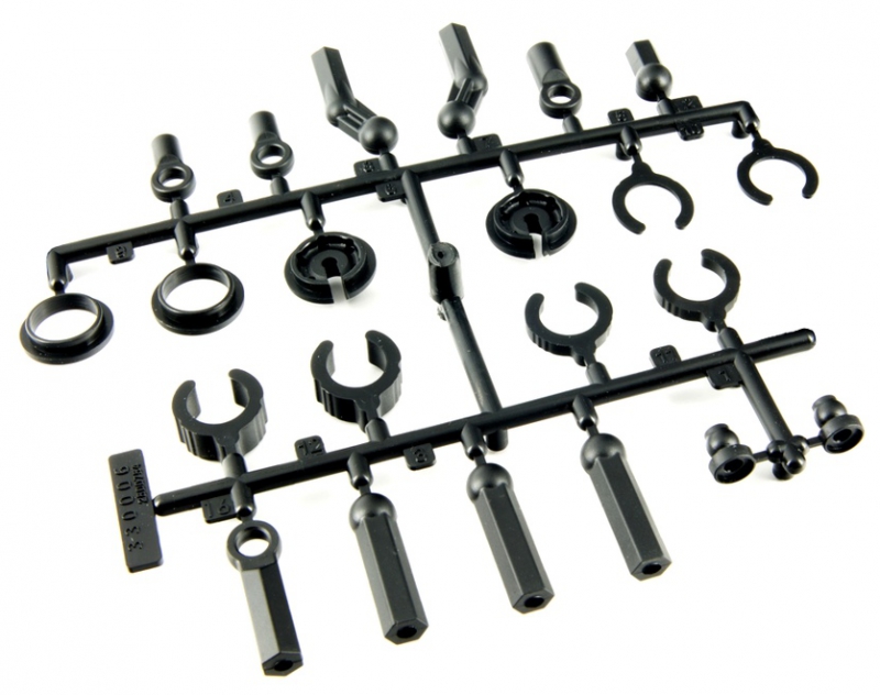 This Rod End Set provides all the parts that are needed to secure your Steering and Camber linkages on your ARRMA vehicle. The set also includes a selection of composite Shock Adjustment Collars, Spring Cups and a Rear Motor Guard Mount.
