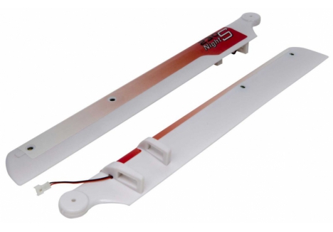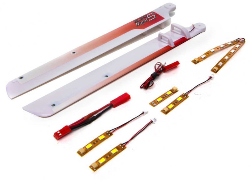 The brilliant LED lighting system features frame and tail-fin lights that operate off the flight pack. The main blades utilize individual 1S ultramicro Li-Po batteries you can easily remove for charging with a 1S charger.