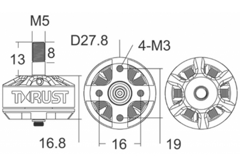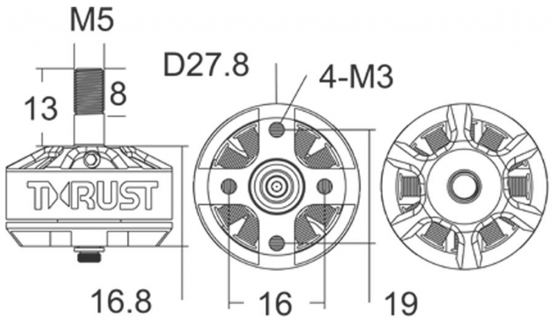 Standard threading and size for FPV motors, allowing these motors to host a variety of propellers.