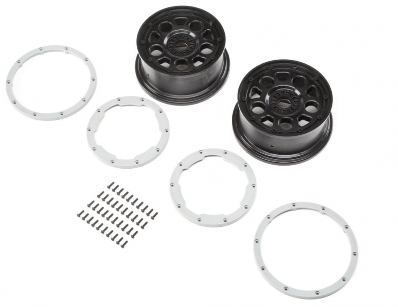 LOS Wheel, Black; Beadlock, Silver (2): DBXL-E Z-LOS45015