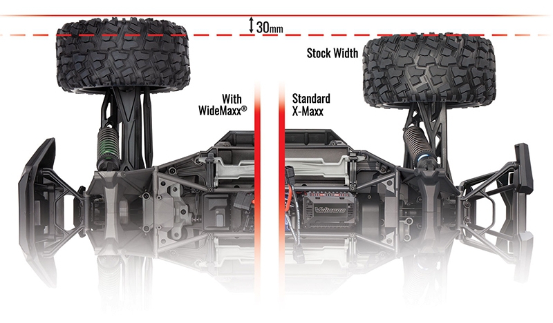 The Traxxas X-Maxx is a new breed of monster truck with a tough-as-nails attitude, brutal power, and unrivalled durability. The WideMaxx kit builds on the X-Maxx s already legendary performance by widening the stance 60 mm for even greater cornering stability. Take your X-Maxx to the next level with the WideMaxx kit and get ready for the ultimate expression of Traxxas Tough.