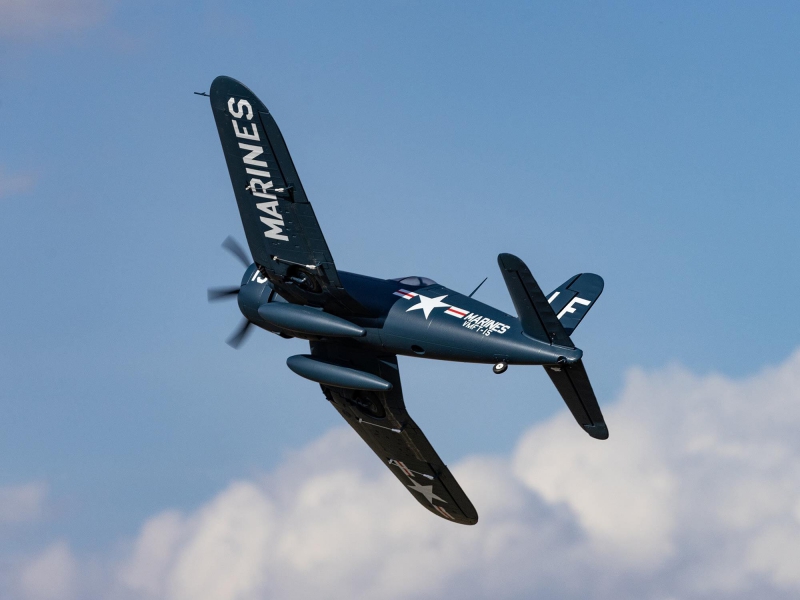 The E-flite F4U-4 Corsair 1.2m has been updated and upgraded into the Smartest, most powerful, and easiest-to-fly scale model of the popular WWII warbird yet - now even more capable of scale-like PLUS higher speed flying and higher energy aerobatics!