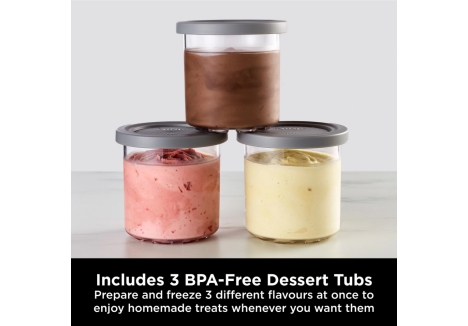 Operating and maintaining the Ninja Ice Cream & Milkshake Maker NC300UK couldn’t be simpler. Fill each durable BPA-free tub, freeze for 24 hours, then snap in the outer bowl, attach the paddle and lid, select your program, and watch the magic happen. When you’re done, pop tubs, lids and paddles onto the top rack of your dishwasher or wash by hand with warm, soapy water for hassle-free cleanup.