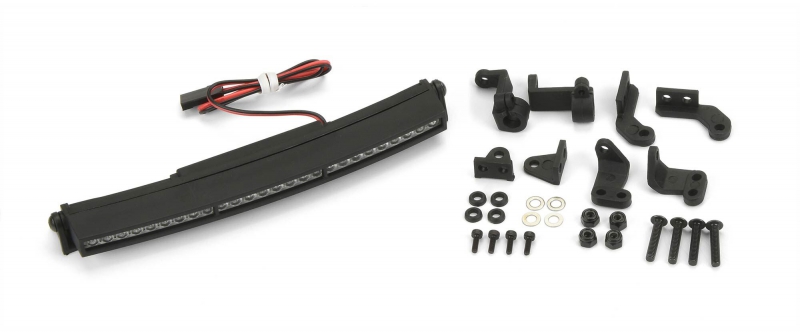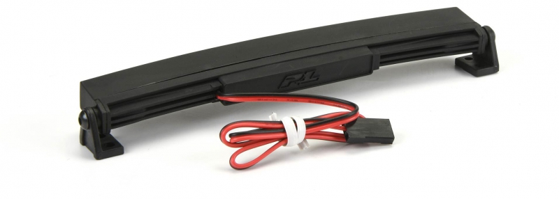 This is a 5" Curved LED Light Bar Kit. Pro-Line is proud to introduce a new 5" Curved LED Light Bar Kit with real, working LED Lights! The 5" Curved Light Bar comes with 26 LED Light bulbs pre-wired with a 12” long cable that can plug directly into your receiver for power. The Lights are rated for 6V to 12V power, so you have the option to plug directly into a 3S Lipo power source for Super-Bright LED Light! The LED Lights are housed in a durable Curved Black Nylon housing branded with a P-L logo and includes the mounts and hardware you need to do a custom install on your favorite vehicle. The 5" Curved LED Light Bar has great scale appearance that will fit in with any scale vehicle. Night Crawling has become the new cool thing to do with your scale rig, don't get left in the Dark! Get Pro-Line's new 5" Curved Super-Bright LED Light Bar Kit for your truck today!