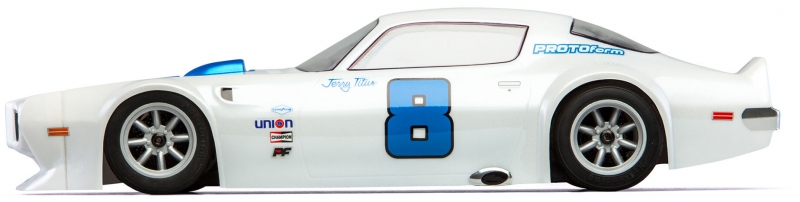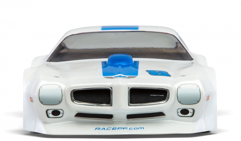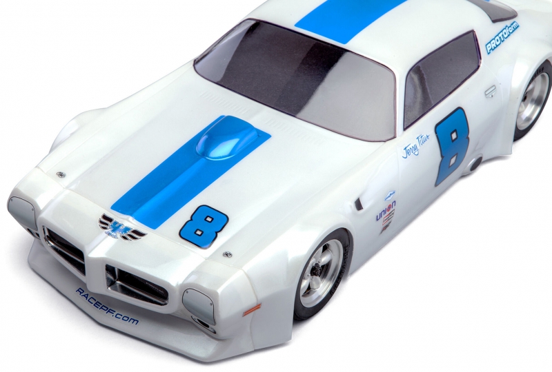 The Pontiac® Firebird Trans Am was one of the signature cars of the former full-scale series, and now PROTOform has captured its trademark look in our release of the 1971 model for your VTA class R/C Touring Car. From its aggressive front "beak", to the duck tail-style rear spoiler, to the mother of all macho items, - the shaker hood scoop - no detail was overlooked. The front nose cone is molded separately, and when mounted with the 2mm screws and/or liquid adhesive, it becomes an integral part of the body. Because this area of a race body is the most prone to racing wear and tear, a second nose is included.
