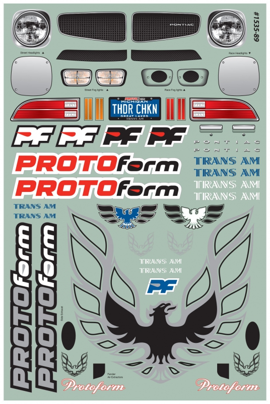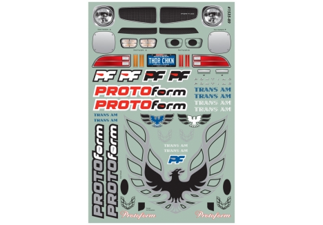 This officially licensed product is produced in genuine .030 polycarbonate material and meets all VTA Class rules. The clear body comes with protective overspray film, window masks, detailed decal sheet that lets you choose to style your Firebird as a full-blown race car, or head-turning street machine.