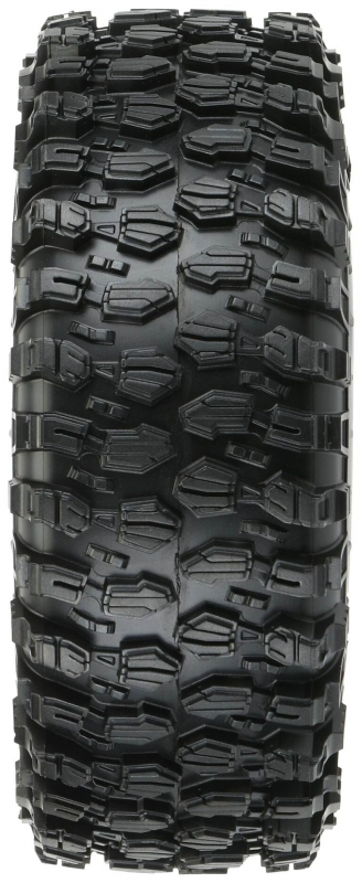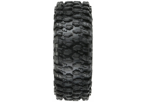 This is a pair of pre-mounted Hyrax 1.9" Tires. The future of 1.9" Tire Performance has arrived with Pro-Line's all-new Hyrax Tire! Designed from the ground up for maximum grip on the toughest terrain, the Hyrax tire is ready for anything your Scale Adventure might throw at you. The Hyrax features an aggressive and open tread pattern with each tread block containing multiple Sipes for incredible tread flex. The highly detailed connected tread on the sidewall of the Hyrax extends out for unmatched side-hilling performance. The Hyrax also features futuristic stepped tread blocks that create even more forward gripping edges that dig into slick rock like no other scale tire Pro-Line has produced to date! The Hyrax is made from Pro-Line's Legendary G8 material, so you know it provides the performance you can depend on.