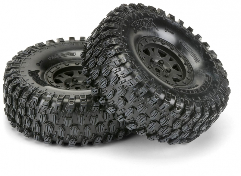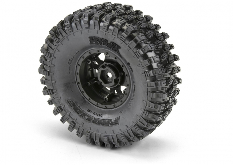 PRO1012810 | Hyrax 1.9" G8 Tires Mounted on Impulse Black Internal Bead-Loc 12mm Wheels (2) for Rock Crawler Front or Rear