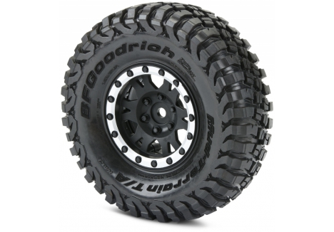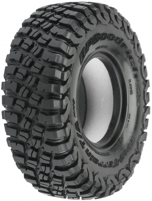 This is a pair of Class 1 BFGoodrich® Mud-Terrain T/A® KM3 1.9" tires. Pro-Line is proud to announce, in cooperation with the leading full-size Off-Road tire manufacturer BFGoodrich®, the co-release of the brand-new fully licensed Class 1 (4.19" OD) size Mud-Terrain T/A® KM3 1.9" tires! Pro-Line was given early access to the design of the full-size BFG Mud-Terrain T/A® KM3 tire and recreated it for the Scale Crawling community in 1.9" size! As always, these KM3 tires will be made in Pro-Line's legendary G8 compound! The Mud-Terrain T/A® KM3 (Key feature: Mud traction 3rd Generation) is BFGoodrich's Off-Road Maximum Traction tire with aggressive tread lugs that bite into loose or muddy surfaces and climb over slippery rocks. Based on the BFGoodrich® Krawler T/A® KX symmetric tread design, the Mud-Terrain T/A® KM3 features deep, self-cleaning independent tread blocks and linear transverse flex zones to provide the grip that you need to get over the toughest obstacles.