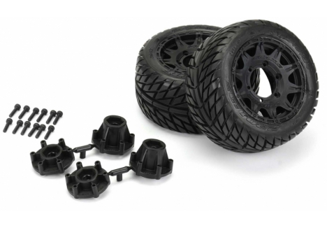The Street Fighter LP 2.8" now comes conveniently Pre-Mounted on the next generation 2.8" wheel design from Pro-Line, the Raid 2.8" Removable Hex Wheel! Imagine being able to easily change the offset of your wheel to fit different applications by simply changing out the hex! You can go from the included 12mm narrow offset (2wd Stampede®/Rustler® Rear) to the included 12mm wide offset hexes (2wd Stampede®/Rustler® Front and 4x4 Stampede®/Rustler® Front and Rear) quickly and easily. Also imagine being able to replace a damaged wheel hex without needing to replace your glued tires (PRO633500 Replacement Hexes) or even upgrading your wheels to 17mm wheel hexes (PRO633600 Sold Separately) for extreme use! These new Raid 2.8" wheels accomplish all of this and more by using Pro-Line's unique 6x30 interlocking hex design that is secured to the wheel by 6 M3 screws that are spaced 30mm across. The built-in adjustability and ease of use make this a new must-have wheel for bashers everywhere!