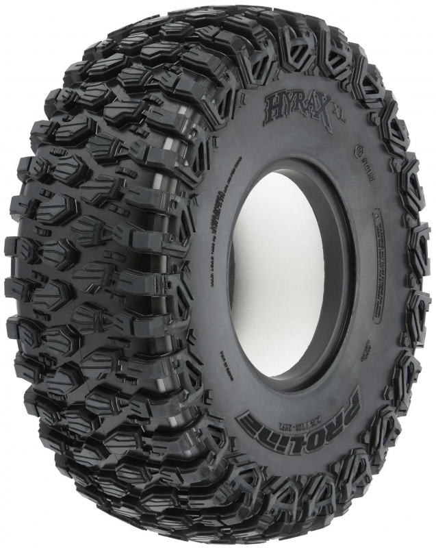 Take your SCX6™ to the ultimate level of rock-climbing performance with Pro-Line's Hyrax XL Tire in G8 compound! Designed from the ground up for incredible grip and stability on the toughest terrain, the Hyrax XL 2.9" tire is ready to tackle anything your Axial® SCX6™ can dish out. The Hyrax features an aggressive open tread pattern with each tread block containing multiple sipes for improved traction and comes in at a massive 7.28" tall and 2.75" wide.