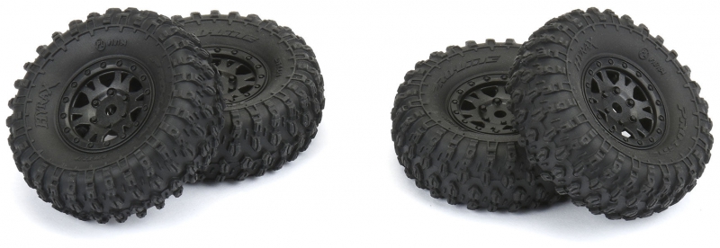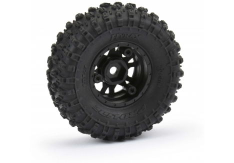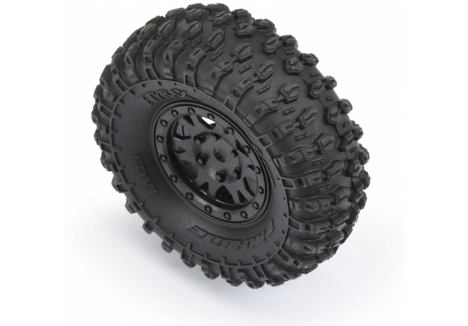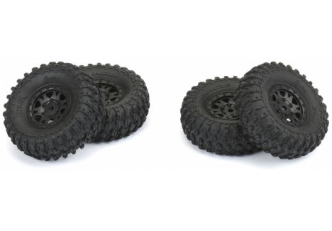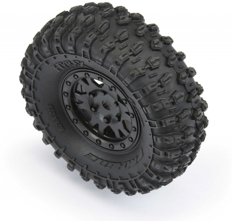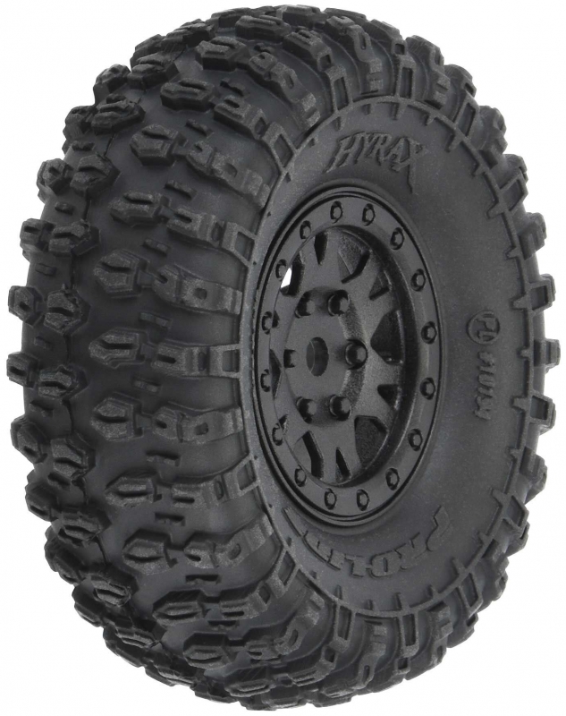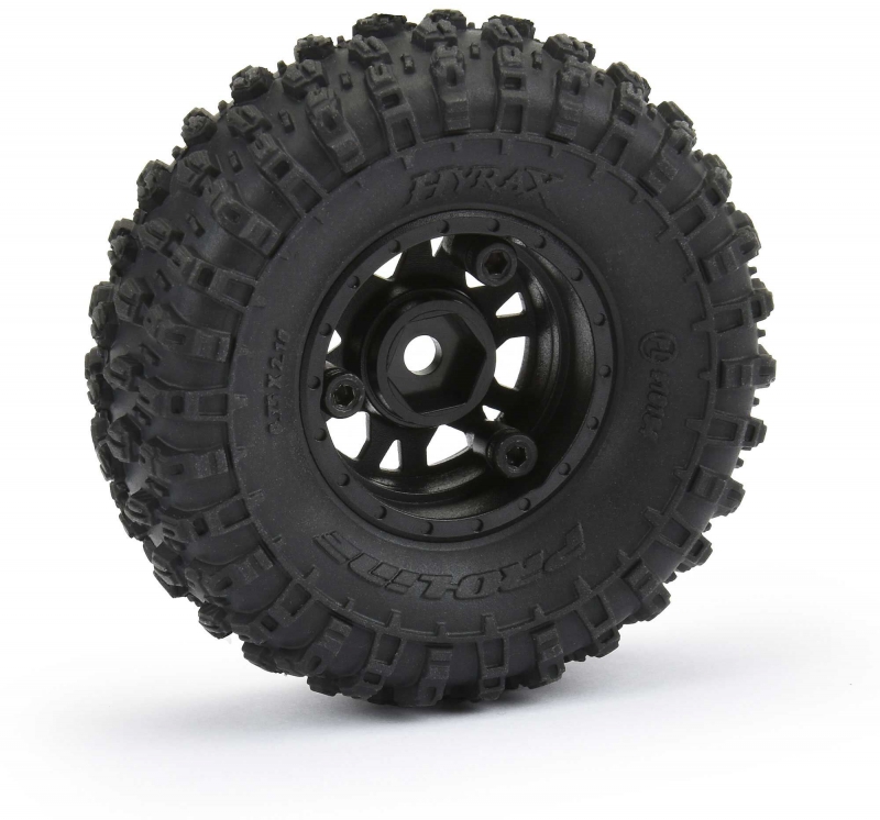 The Hyrax 1.0" tire comes conveniently pre-mounted to our Mini Impulse Black Internal Bead-Loc 1.0" Plastic 7mm Hex wheels! Yes, these are true 3-piece Bead-Loc wheels! Just like Pro-Line's 1:10 size Impulse wheels, these all-new Mini Impulse wheels are designed to not only look scale but are super easy to use by only requiring 3 screws per wheel for mounting tires. The unique 3-piece plastic wheel design bolts together in the back and locks on to Pro-Line's Hyrax 1.0" Crawling Tires and also works with many existing 1.0" tires for the SCX24™. If you own a SCX24™, then Pro-Line's new pre-mounted set of Hyrax 1.0" Tires are a must have! Get your own set today!