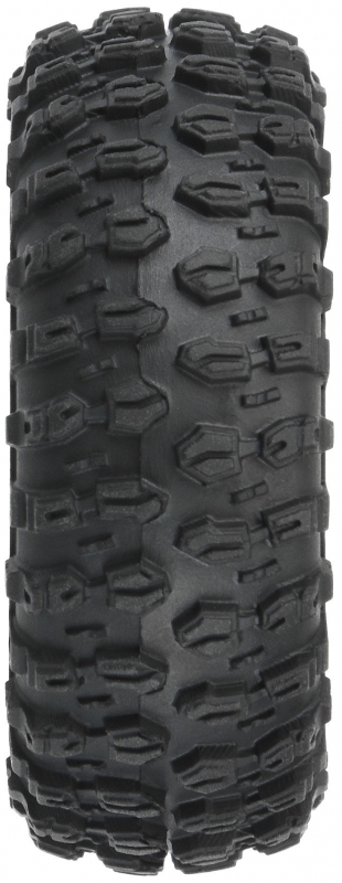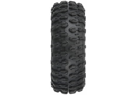 The future of SCX24™ Tire Performance has arrived with Pro-Line's all-new pre-mounted Hyrax 1.0" Tires! Just like Pro-Line's 1:10 size Hyrax tires, these mini tires are designed to provide maximum grip on whatever terrain your SCX24™ attempts to tackle. The Hyrax features an aggressive and open tread pattern with each tread block containing Sipes for additional tread flex. The highly detailed connected tread on the sidewall of the Hyrax extends out for unmatched side-hilling performance. The Hyrax also features futuristic stepped tread blocks that create even more forward gripping edges that dig into slick rock like no other mini tire produced to date! The Hyrax 1.0" tires are made from a super soft compound to help your SCX24™ climb to new heights and the tires are supported with soft foam inserts. The Hyrax 1.0" tires come in at an overall height of 2.10" and a width of 0.75".