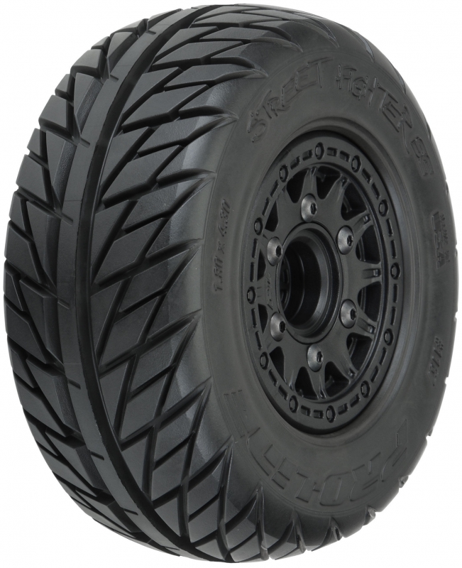 This is a pair of pre-mounted Pro-Line Street Fighter SC Tires. Looking for the ultimate long-wear street tire? Then check out Pro-Line's Street Fighter SC. Based on the latest in high-performance on-road tire technology, the Street Fighter SC has the perfect balance of G force enhancement and style that will keep your truck turning heads.