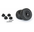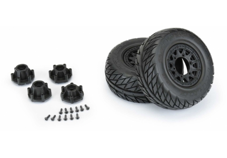 The Street Fighter SC tires are mounted to a pair of Raid SC Removable Hex Wheels. We take the guesswork out of your glue job by doing the mounting for you so you can spend your time having fun! Pro-Line is proud to introduce a true next-generation Short Course wheel design – the Raid 2.2"/3.0" Removable Hex Wheel for all Short Course Tires! Imagine being able to easily change the offset of your wheel to fit different applications by simply changing out the hex! Now you can with the new 6x30 Removable Hex system from Pro-Line. The wheels include a pair of 12mm Slash® 4x4 Front/Rear (Slash® 2wd Rear) hexes and a pair of 12mm Slash® 2wd Front hexes that fit the most popular trucks. Optional 14mm, 17mm and ProTrac™ offset 12mm hexes (PRO6355-00) are available separately to fit your exact application. If your wheel hex ever gets damaged, it can easily be replaced without needing to replace your glued tires (PRO6354-00 Replacement Slash® Hexes)! These new Raid SC wheels accomplish all of this and more by using Pro-Line's unique 6x30 interlocking hex design that is secured to the wheel by 6 M3 screws that are spaced 30mm across. The built-in adjustability and ease of use make this a new must-have wheel for Short Course Trucks everywhere! Get your new Raid SC pre-mounted tires today!