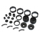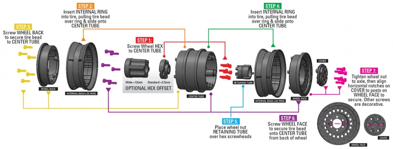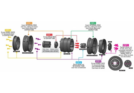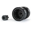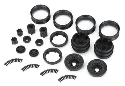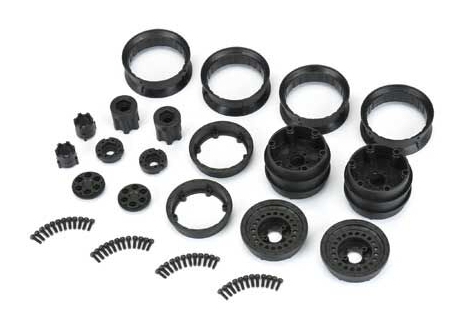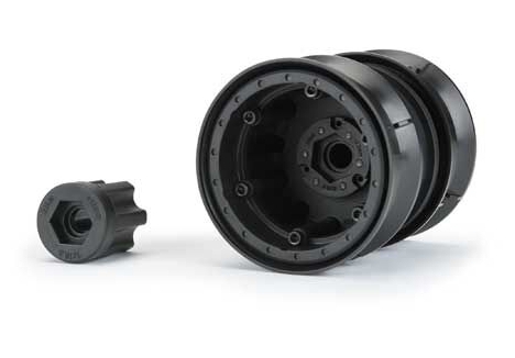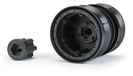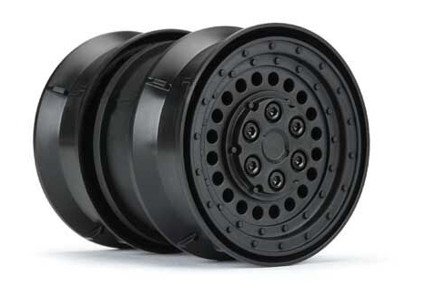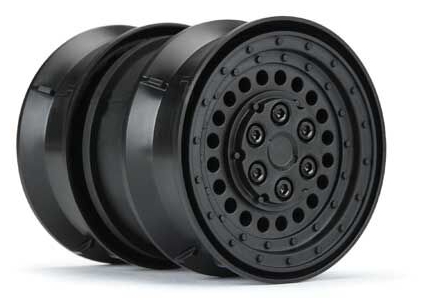 This is a pair of Carbine 1.9" Black Plastic Internal Bead-Loc Dually Wheels. Pro-Line is proud to introduce our new Carbine 1.9" Dually Wheels! This pair of Carbine dually wheels will go perfectly with your next military-style or extreme off-road build and will fit 4 standard 1.9" tires, 2 tires per wheel. The best part of the Carbine is the modular wheel design that allows it to be used as a single tire wheel, dual tire wheel, or you can keep adding as many tires as you want with the addition of more Carbine wheels! The face of the Carbine 1.9" wheel features 20 small holes with molded-in bead-loc detail for a tough military look. The included scale wheel nut cover attaches with two screws and completes the rugged appearance. The Carbine Dually wheel includes two optional 12mm hex offsets to fit both straight axles and portal axles and to give you the option for a narrow or wide offset. If you are looking for dually wheels for your build, then look no further than the most advanced wheels to date. Get your very own pair of Pro-Line modular Carbine 1.9" Dually Wheels today!
