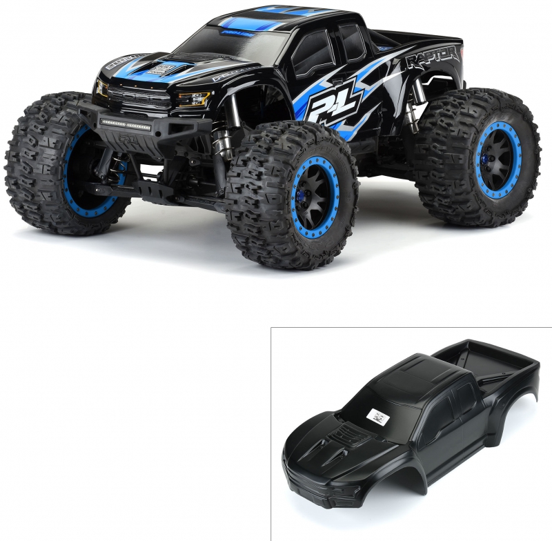 This is a Pro-Line 2017 Ford® Raptor Tough-Color (Black) Body for the X-MAXX®. Pro-Line now offers the best-selling 2017 Ford® F-150 Raptor truck body for the X-MAXX® in Tough-Color Black material! You no longer have to worry about painting the body or paint chipping off during use because the Tough-Color material is black all the way through. All you need to do is install the included high-quality graphics and go!