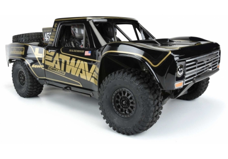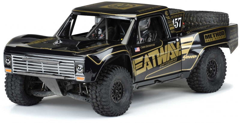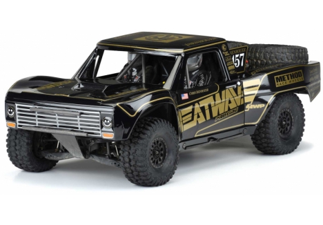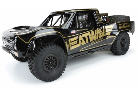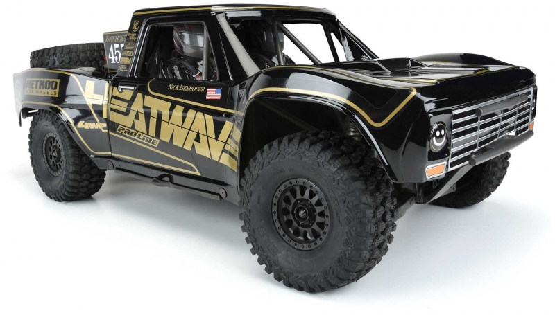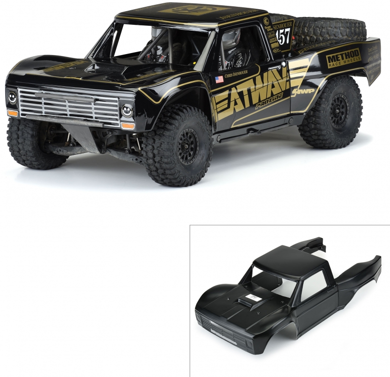 - Product Type: PRO G-PRO3547-18 1967 Ford F-100 Heatwave body with Tough-Color polycarbonate for UDR, PRO G-PRO3547-18 pre-cut black body with wrap decals and licensed Heatwave graphics, PRO G-PRO3547-18 1/7 scale desert truck body with 26.3" length and 16.5" wheelbase, PRO G-PRO3547-18 with wide fender flares and flat front grille for scale realism, Heatwave edition body with black and gold wrap and window stickers included