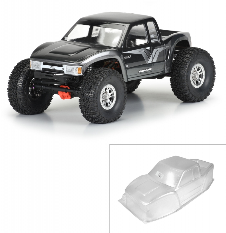 Introducing the all-new Cliffhanger High Performance Rock Crawling competition body from Pro-Line that was developed specifically for 12.3" wheelbase Class 2 and Class 3 vehicles. Scale competition crawling is a growing part of the overall rock crawling movement and Pro-Line's Cliffhanger body provides everything that these competitors have been asking for. The Cliffhanger features a pinched front end and a dove-tailed rear end for maximum tire clearance while still maintaining a true-to-scale appearance. The Cliffhanger is made from a single piece of crystal-clear polycarbonate to save on weight and has a molded-in drop-down bed to make room for you to add your favorite scale accessories. Everything on the Cliffhanger body has been optimized for maximum crawling performance while still complying with the letter and spirit of the competition crawling rules. Don't get stuck behind on the rocks, get your very own Cliffhanger body today!