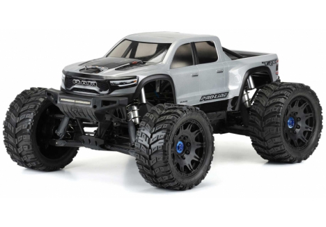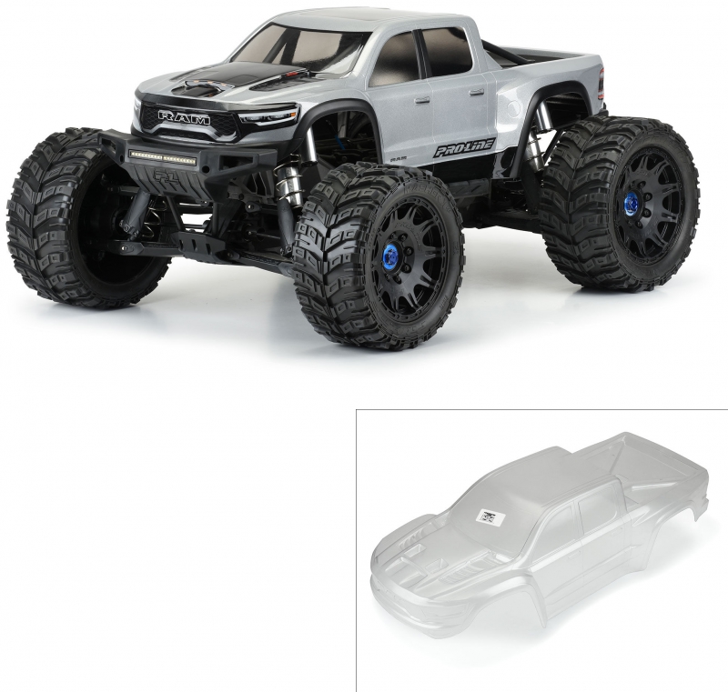 Pro-Line now has the ultimate licensed Ram body specifically made for the X-MAXX® - the 2021 Ram 1500! The just-released full-size 2021 Ram 1500 is the most powerful production truck ever produced with over 700-horsepower and has an extreme off-road look that will separate your truck from the rest. Pro-Line has included all the aggressive scale detail into the body and sticker sheet for a highly detailed replica and it comes Pre-Cut to get you going faster. This body completely transforms your X-MAXX® into an even crazier Bash Machine and allows you to add a custom paint job! Give your X-MAXX® the tough off-road look it deserves with Pro-Line's new 2021 Ram 1500 body!