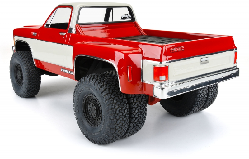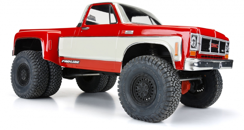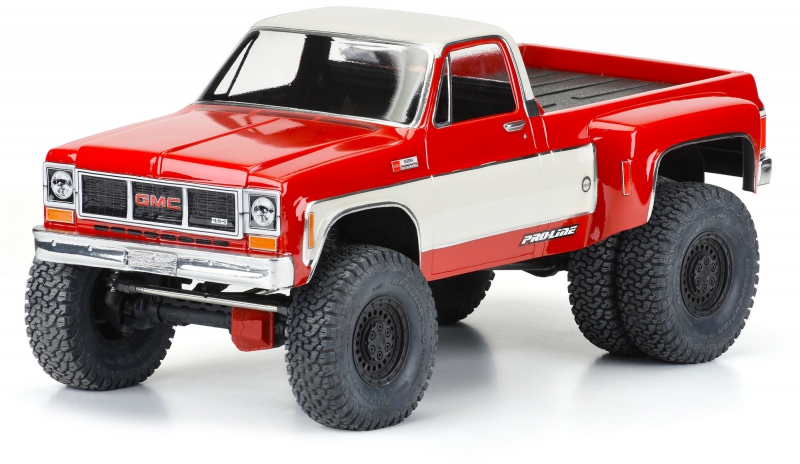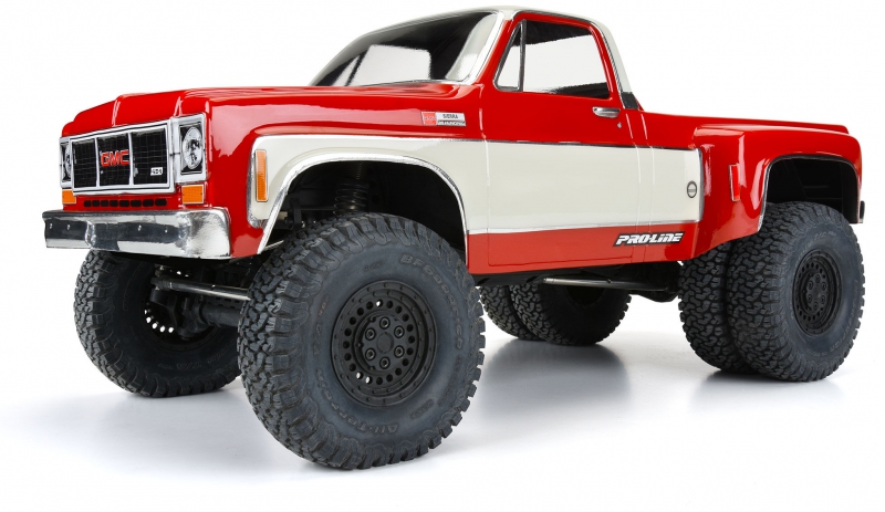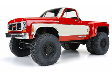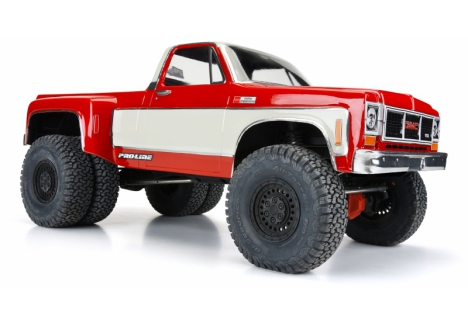 Introducing the 1973 GMC® Sierra™ 3500 Dually Clear Body for 12.3" crawlers! Now you have a crawler body specifically made for dually rear wheels like Pro-Line's Carbine wheels (PRO278600). The GMC® Sierra™ 1 ton dually is an iconic truck for pulling trailers, campers, or anything you can imagine and now you can recreate your dream rig on your 12.3" crawler. This body is fully licensed by GMC® and has all the details you expect including the extra-wide rear fenders to fit dually rear tires. This body comes clear and includes detailed decals, window masks, and overspray film so you can fully customize the look of your truck. Get your own 1973 GMC® Sierra™ 3500 Dually Body today!