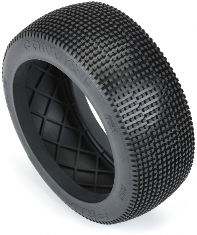 Introducing the all-new Convict 1:8 Buggy race tire that represents Pro-Line's next-generation version of the World Champion Fugitive tire! The Fugitive was developed to be the longest-lasting race tire ever produced and it proved that by winning the World Championship in the harshest condition while still having tread leftover. But for most racetracks and in most conditions, you just don't need that much tread. Enter the new Convict, a lightweight and more versatile version of the popular Fugitive! The Convict is made from Pro-Line's latest generation carcass shape for improved bump handling and features smaller and more spaced-out tread, so it has the speed for qualifying while still having the right amount of tread to last long main events. Strategically placed small connecting bars improve the stability of the tire tread, which is especially important when used in softer compounds. Don't get caught spinning your tires out in the dust, the Convict is your new go-to tire for both qualifying and mains! Get your own set today!