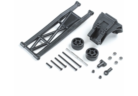 - Suspension: Lower A-arm, upper link – designed for minimal travel and launch stability