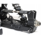 - 7075 aluminium chassis – 3mm hard-anodized plate with deep milling for flex and weight reduction