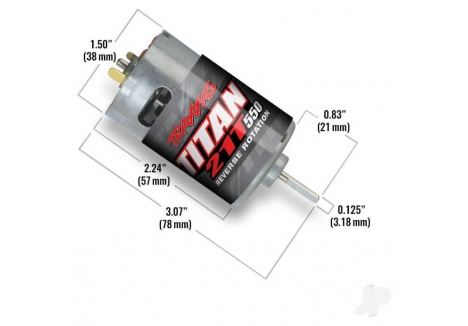 - Motor: Titan® 21T reverse rotation – high-torque brushed motor with internal cooling fan