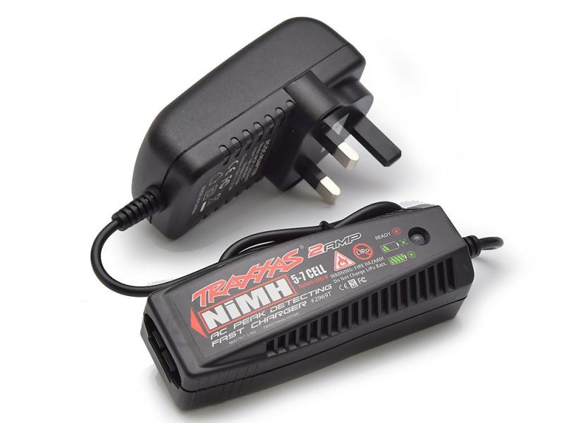 A genuine Traxxas 2A peak detect charger for use with Traxxas NiMh Power cell packs using ID connector. Comes with UK 3-Pin 240v mains / AC power supply.