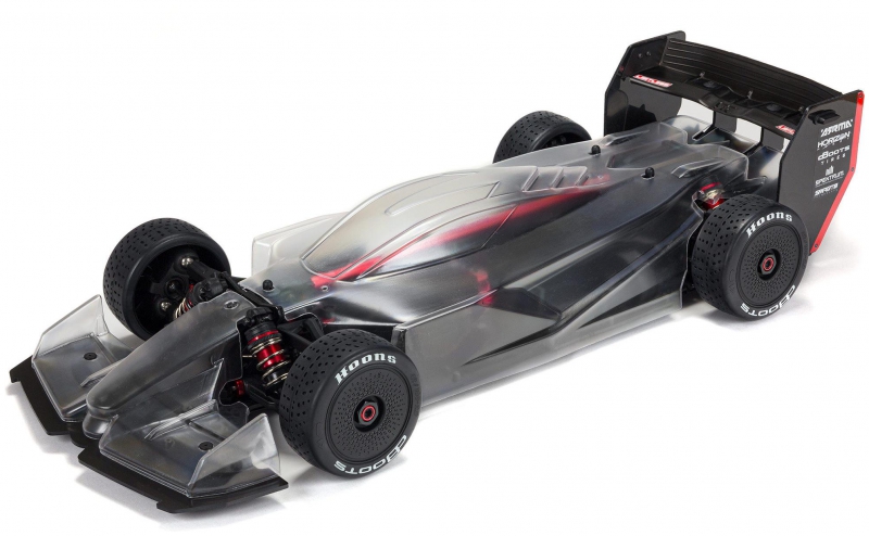 - Body: Clear and trimmed – includes decals and window mask for custom paint
