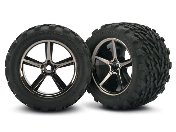 The Talon's unique tread pattern and soft compound rubber delivers excellent grip on a variety of surfaces. The Gemini chrome 2.2" wheels provide responsive handling with a low-profile tyre sidewall. tyres come pre-glued and ready to mount with matching foam inserts.