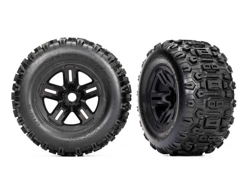 Tyres and wheels, assembled, glued (3.8in black wheels, Sledgehammer Tyres, foam inserts) (2)