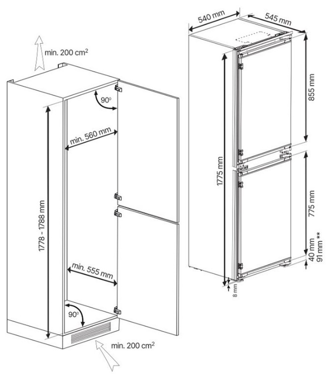 With a sliding hinge system and flush dimensions, the 50/50 integrated fridge freezer frost free fits seamlessly into tall cabinetry. The integrated handle design keeps the exterior clean and minimal, while the LED interior lighting ensures visibility across every shelf. Whether you're upgrading a galley kitchen or designing a new build, this model offers a refined, space-efficient solution.