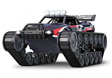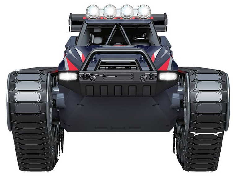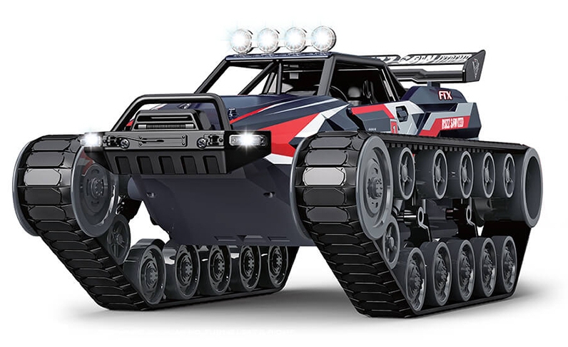 The FTX0602BL tracked RC ATV with water exhaust and LED lights is built for aggressive terrain and immersive driving. Its dual motor wavebox allows the rubber tracks to rotate in opposite directions, enabling tight turns and 360° rotation. The independent suspension system absorbs shocks from rocks, roots, and uneven surfaces, while the raised cockpit and sealed drivetrain allow shallow water driving. The LED lighting system and steam exhaust effect add visual drama, making the Buzzsaw ideal for both daylight and nighttime bashing.