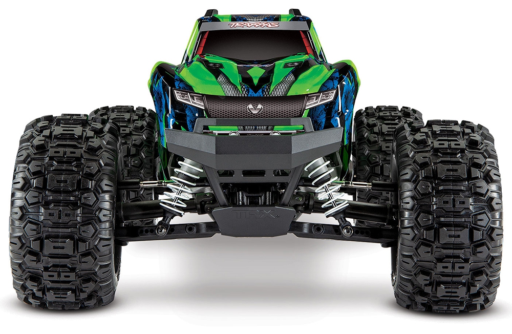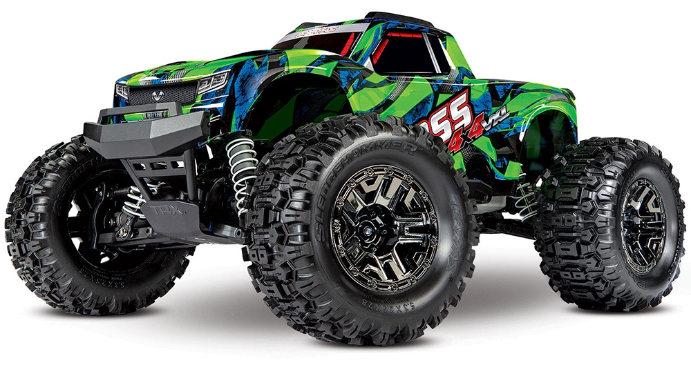Traxxas builds the TRX90076-4 monster truck for off-road terrain complete with a 4 wheel-drive system. It runs on the Velineon 540XL motor delivers massive torque to a wheelie whenever you need it. Its Sledgehammer™ tires have a pristine grip over dirt, sand, mud, and snow and will blast right through it. Traxxas Stability Management system gives you complete control and keeps your car in perfect balance even at high speeds. A Digital High Torque Waterproof Steering Servo provides you with the power to drive the TRX90076-4 over rocks and race over rough terrain and experience no loss of power.