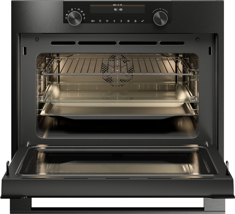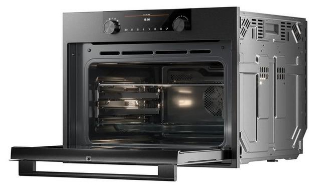 Navigating this oven is effortless thanks to a full-colour TFT matrix display and tactile soft-touch buttons. The interface provides quick access to all 19 heating types, along with integrated timers, cooking duration indicators, and safety notifications. As a combination microwave with auto programmes and steam cleaning, it streamlines every stage of meal preparation, from setup to cleanup.