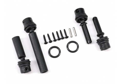 TRX-4M rides on a sophisticated four-link suspension with heavy-duty linkages. Spool-equipped solid axles supply non-stop climbing power to all four wheels with excellent articulation to climb over the toughest obstacles. Heavy-duty telescoping centre driveshafts send the motor s torque to the axles with a smooth-running CV design.