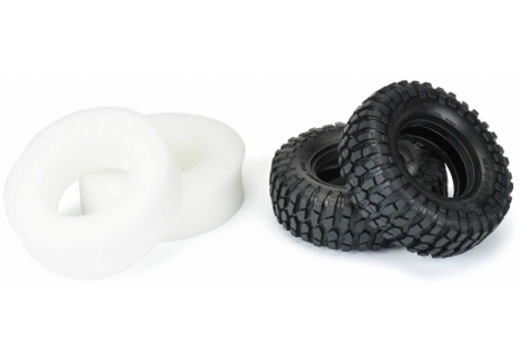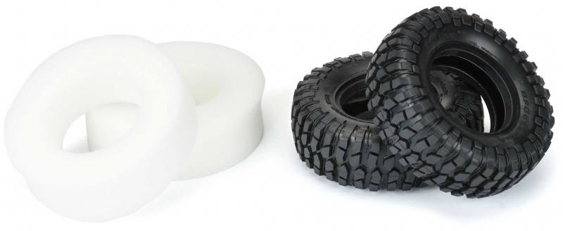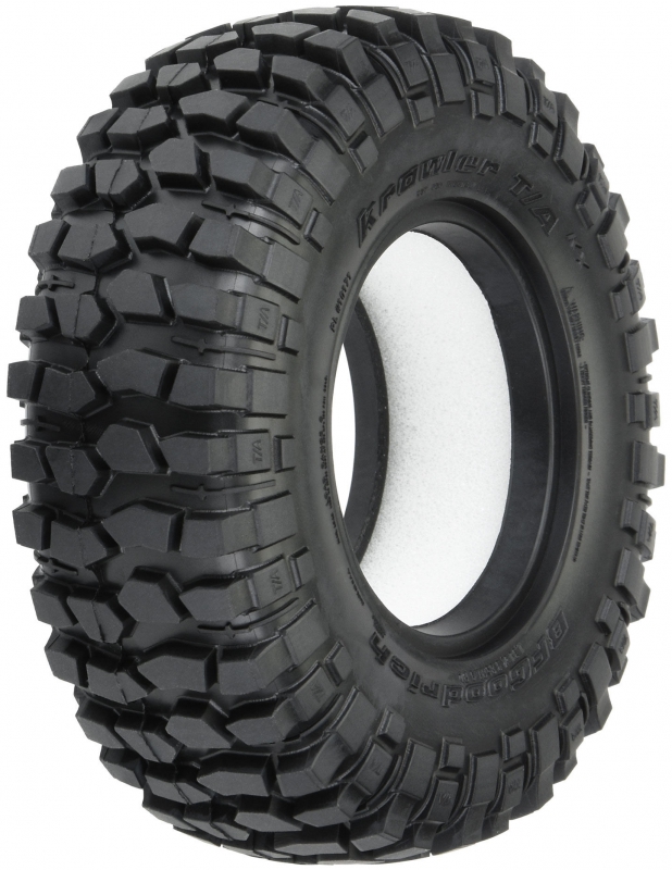 This is a pair of BFGoodrich® Krawler T/A® KX 1.9" tires. Pro-Line is proud to announce the fully licensed Krawler T/A® KX 1.9" tires in the new 3.85" OD size continuing our successful partnership with the leading full-size Off-Road tire manufacturer - BFGoodrich®! This collaboration started with the introduction of the full-race BFGoodrich® Baja T/A® KR2 tires and continued with the extremely popular BFGoodrich® All-Terrain KO2. The Krawler T/A® KX (KX is for Key feature: eXtreme traction) is BFGoodrich's Off-Road Maximum Traction tire for off-road enthusiasts who participate in the extreme sport of rock crawling to challenge their crawling skills and the performance of their vehicles. This purpose-built rock crawling tire was developed through participation in competition as BFGoodrich® worked directly with full-size rock crawling enthusiasts. The all-new 3.85" OD size is Pro-Line's smallest 1.9" tire to date and provides incredible scale performance in a small package.