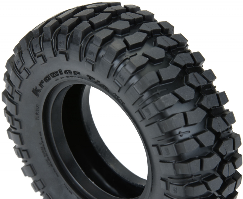 The Krawler T/A® KX features an extra deep tread design with a tread pattern that combines deep, aggressive independent blocks with solid sidewall lugs. Pro-Line's re-creation of the Krawler T/A® KX comes in at 3.85" tall x 1.31" wide for the perfect balance of Ultra-Scale looks and performance! The all-new BFGoodrich® Krawler T/A® KX 1.9" tires from Pro-Line are a must-have. Get yours today!