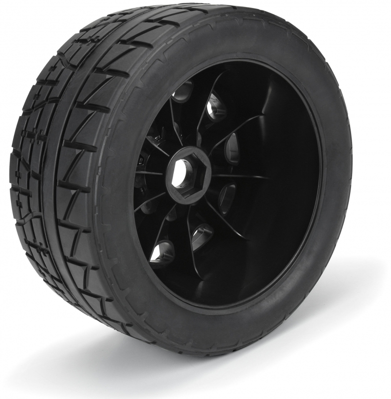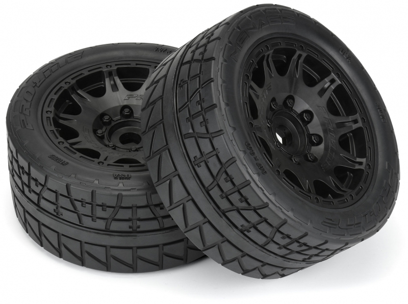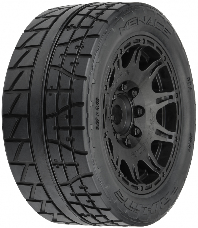 PRO1020510 | Menace HP Street BELTED Tires Mounted on Raid 5.7" Black Wheels (2) for X-MAXX®, KRATON™ 8S & Other Large Scale 24mm Hex Vehicles Front or Rear
