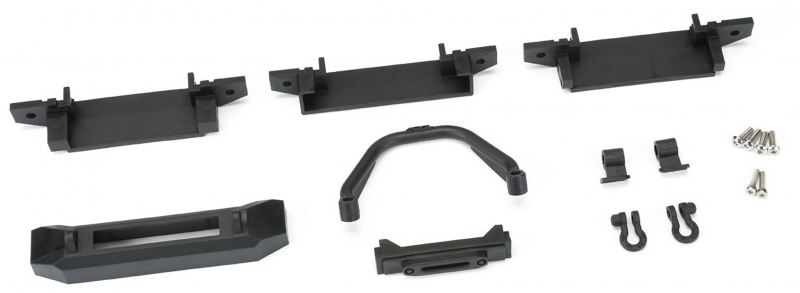 This is a Ridge-Line High-Clearance Crawler Front Bumper. Pro-Line is proud to introduce our latest in Scale Crawler Accessories, the all-new Ridge-Line High-Clearance Crawler Front Bumper for SCX10™ II, TRX-4® and Ascender®! This bumper was designed from the ground up to achieve the highest front bumper clearance possible while maintaining a Scale Appearance. The Ridge-Line High-Clearance bumper is also extremely versatile allowing you to run the included molded winch fairlead or swap it out for Pro-Line's 2" Super-Bright LED Light Bar (sold separately) for an integrated bumper light! Pro-Line engineers also designed the bumper to allow for the use of the included Push Bar or eliminating the Push Bar altogether for a sleeker, low-profile look. D-Ring shackles are included to finish off the Scale Appearance of this 4" wide awesome new bumper.