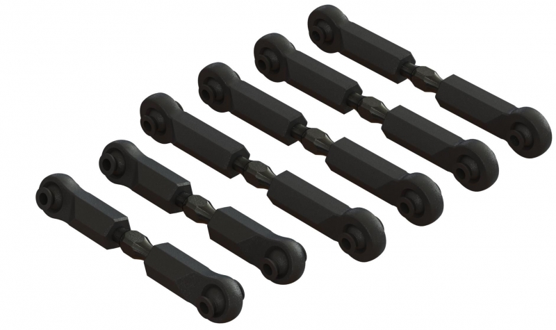 Supplied assembled and ready to fit to your ARRMA model - Front and rear upper links and steering links included - Rod ends and pivot balls are molded from composite material for long-lasting durability and increased impact resistance - Steel turnbuckles are precision manufactured and have threaded ends for safe and secure rod-end fit - High-quality materials used for maximum strength - Square section in the center for adjustment with a 5mm turnbuckle wrench