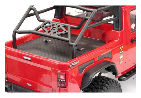 - Body: Moulded scale pickup cab with roof rack and cage for visual realism