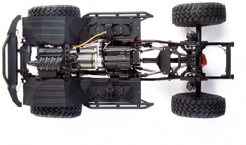 - Engine Detail: Replica V8 engine cover – doubles as ESC mount and receiver box cover