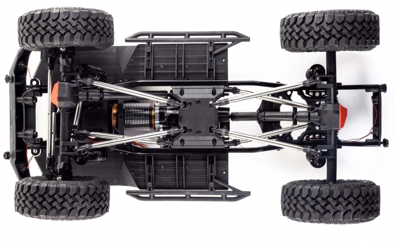 - Shock Type: Aluminium body oil-filled coil-over springs – tuned for large-scale terrain absorption