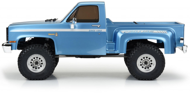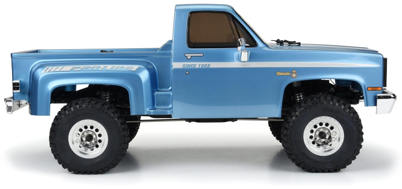 - Pro-Line 1982 Chevy K10 body – molded grille, bumpers, brake lights, and side mirrors for scale realism