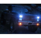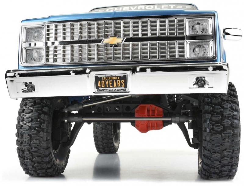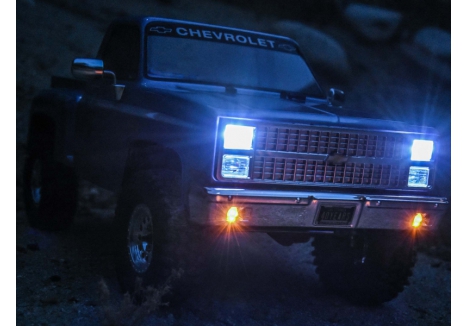 The officially licensed Pro-Line 1982 Chevy K10 body on the Axial SCX10 III Pro-Line 1982 Chevy K10 C-AXI03029 ready to run 4WD rock crawler for sale is packed with scale details that elevate realism. It features a molded grille, front and rear bumpers, brake lights, and two-piece side mirrors—all factory-installed on an exclusive blue body that won’t be available separately. These visual elements make the crawler as impressive on the shelf as it is on the trail. Combined with the LED light system, which includes headlights and amber running lights, the Axial SCX10 III Pro-Line 1982 Chevy K10 with LED lights delivers immersive scale realism even in low-light conditions.