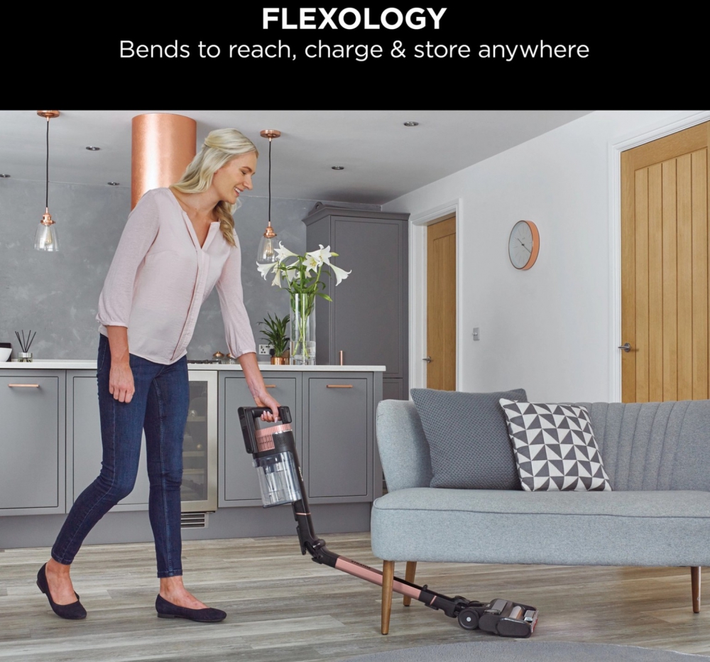 - Flexology wand – bends to clean under furniture and folds for compact storage