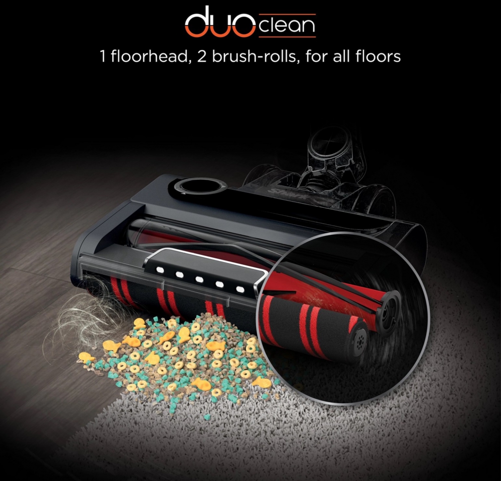 - DuoClean floorhead – two motorised brush-rolls for seamless transitions between carpets and hard floors